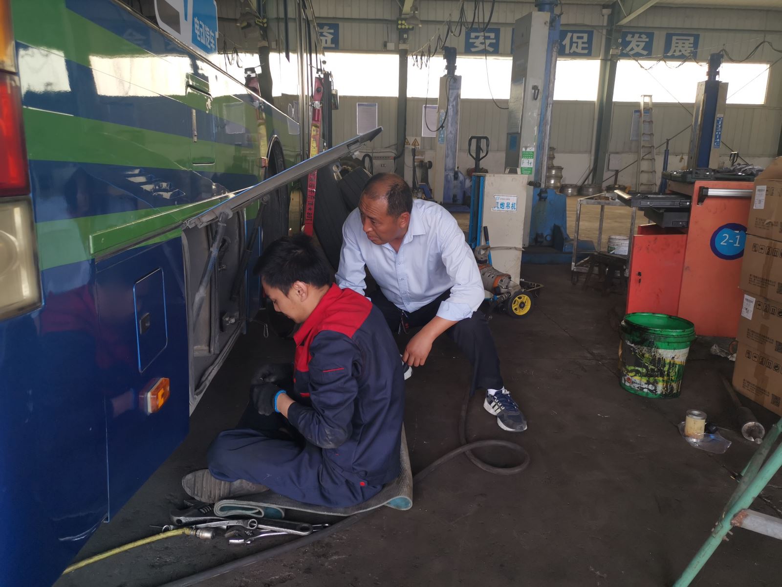 本次專項檢查工作由分公司經理帶隊,副經理和機務人員、例保人員參加,在早上出場前對所有運營車輛的發(fā)動機倉(發(fā)電機倉)、輪胎、轉向傳動系統、燈光、雨刮、顯示屏、滅火器、安全錘等進行專項檢查。對檢查中發(fā)現的5臺純電動車輛的電池漏油情況,要求機務人員安排整改修復到位;對12臺發(fā)動機倉衛(wèi)生不合格的車輛駕駛員提出批評教育,要求當班駕駛員必須清理干凈再出場運營。