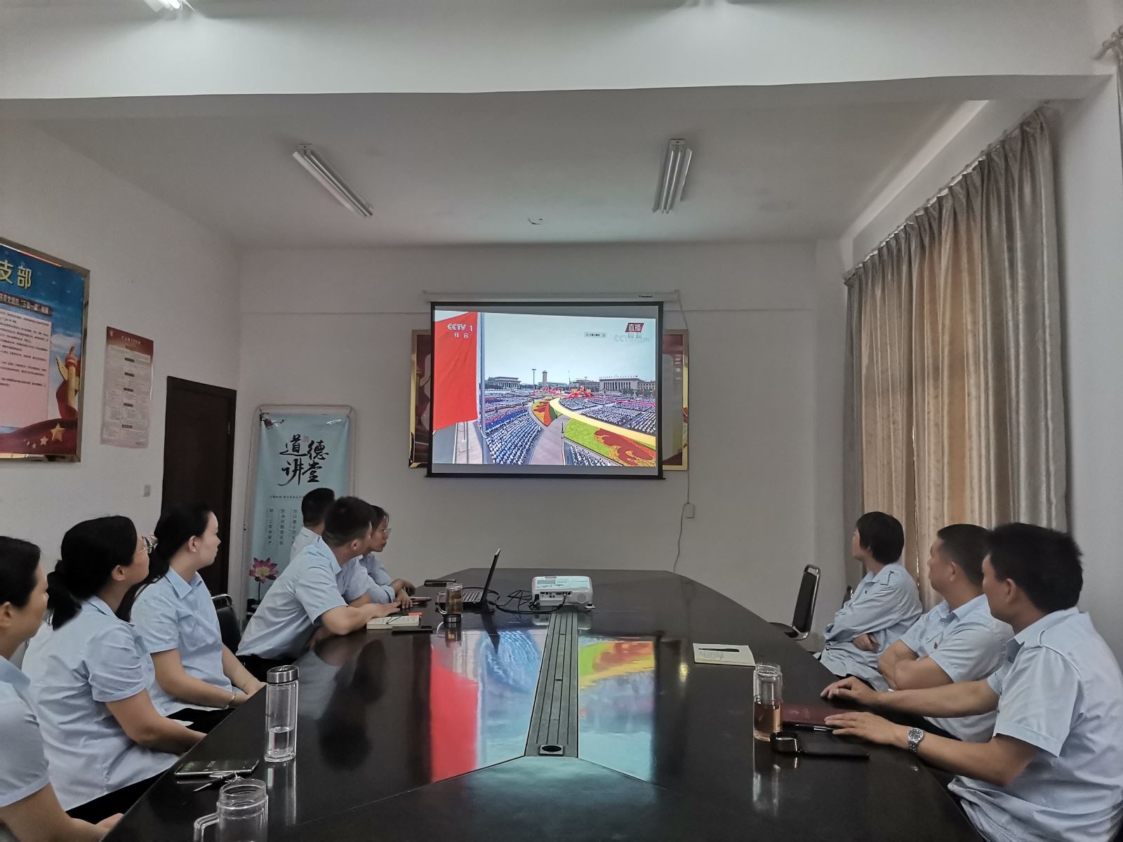 機務技術事業部黨支部組織全體黨員到會議室準時收看慶祝大會,其他工作人員用電腦或手機收看。