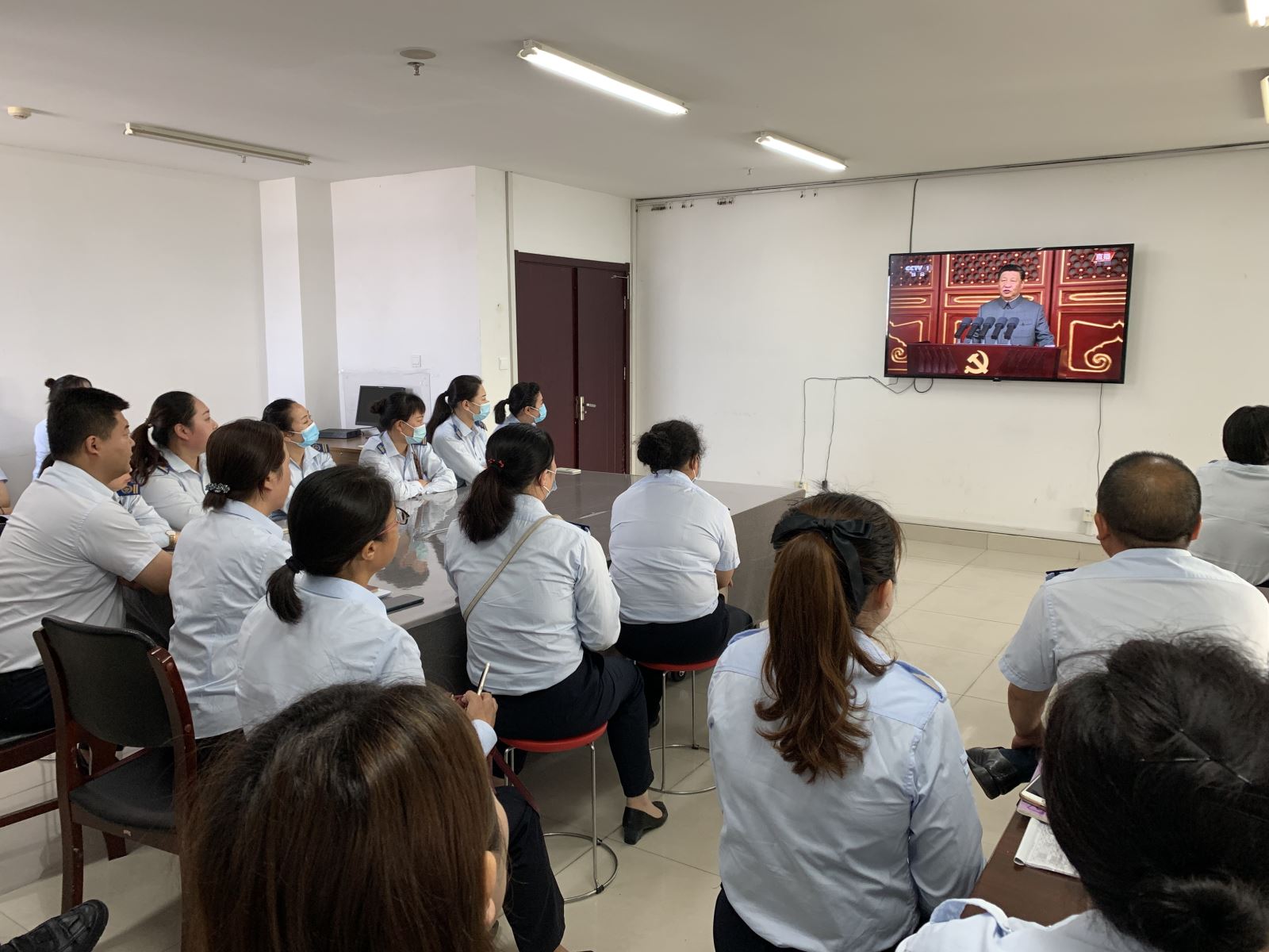 經營發展事業部班子成員、三級干部、全體黨員、預備黨員、積極分子共40余名同志收聽收看了大會實況直播,分別在新華會議室、江華北路和車廂內收看直播。