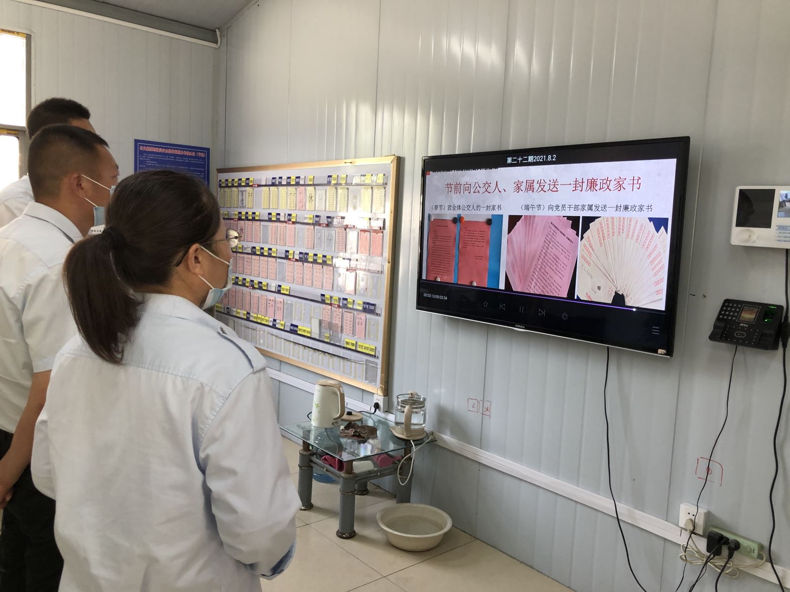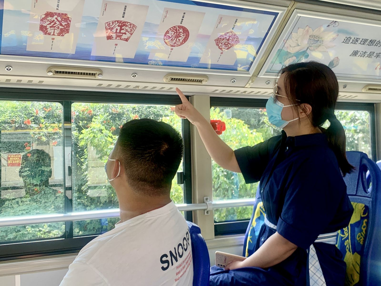 集團通過在各個公交停保場、站臺、公交車廂開辟廉潔文化電子宣傳專欄,征集格言警句、定期制作漫畫說紀專題片、本地歷史清官人物簡介等形式將廉潔文化進一步延伸至全市700余臺公交車載電子屏、82個BRT站臺屏以及11個大型停保場宣傳屏,以沉浸式體驗的方式打造職工、群眾喜聞樂見的具有行業鮮明特色的廉潔文化精品,推動廉潔文化融入日常工作、生活的各個環節,切實發揮了公交集團作為市級廉政文化建設示范點的引領、輻射和帶動作用,打造了流動的廉潔文化教育課堂。