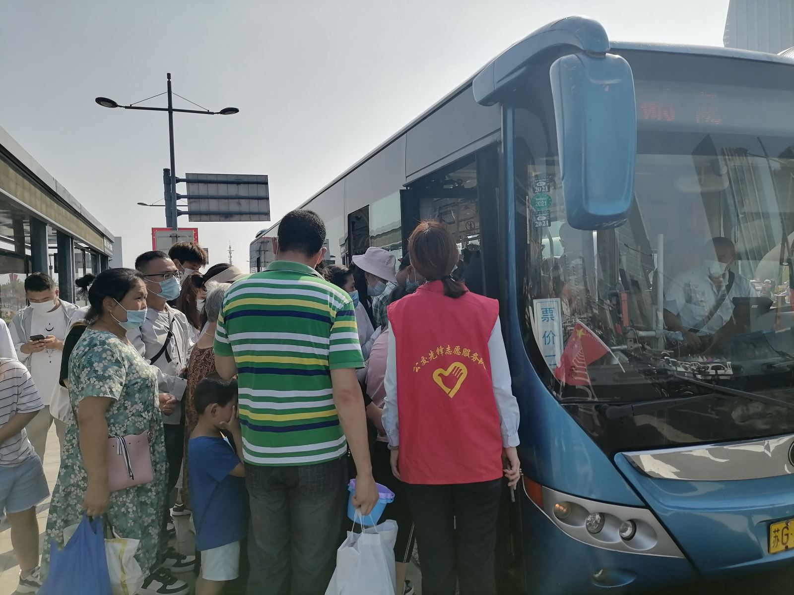 針對花果山景區客流高峰情況,公交集團提前與景區管委會對接,調集8臺公交車開通機動車臨時停車點至景區內免費公交短駁線,現場安排20余名管理人員進行輪流值守,根據客流情況靈活調配,確保游客安全有序集疏。