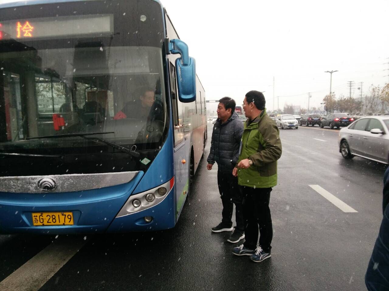 公交新浦公司安全經理臧廣運帶領所有安管人員至西城公交總站和華威發車點進行現場安全交代,同時安排信息中心向駕駛員發送雨雪天氣行車安全提示。經理朱華麗要求安機科及各車隊要高度重視入冬第一場雪對行車安全的影響,把安全生產工作落實到位,確保車輛運營穩定有序。