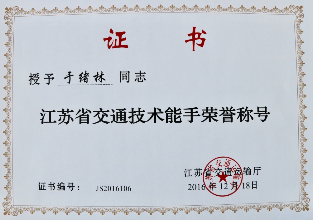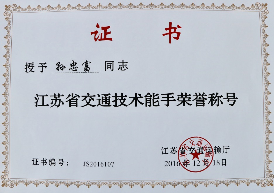 近日,公交集團張強、孫忠富、于緒林被江蘇省交通運輸廳授予第三批“交通技術能手”榮譽稱號,這是繼樊燕飛獲此項榮譽后,又有3位同志獲此殊榮。