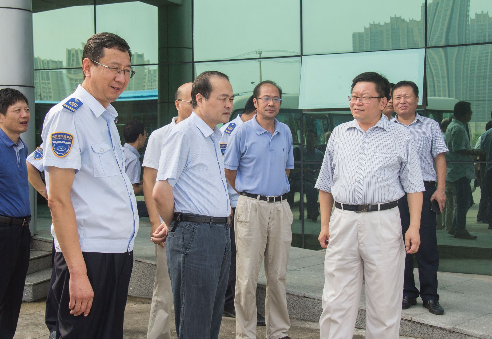 連云港市副市長尹哲強一行8月6日上午到連云港市公交集團開展專題調研督查工作,交通控股集團黨委書記、董事長劉永能、副總經理孫超、公交集團黨委書記、總經理劉佃華及相關部門負責人陪同。