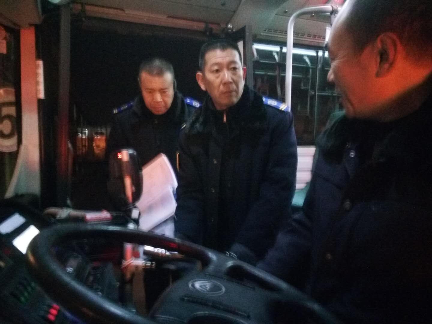 近日,公交集團快速公交公司開展了車輛入冬專項檢查,檢查地點在東、西區車隊,由快速公交支部書記王浩、安全經理崔建兵和機務經理聶磊帶隊,兩邊車隊安全員和機務員參加檢查。此次車輛入冬專項安全檢查,針對冬季天氣寒冷、晝短夜長且霧天較多的情況,嚴格按照安全生產“七必查”(三證、燈光、手制動、輪胎、監視器、消防器材、車容車貌及車輛的破損情況)、 “三漏(漏氣、漏電、漏液)”、電車線束是否磨損以及靜電帶是否接地等進行仔細認真的檢查。檢查過程中同時對駕駛員進行安全交代,針對冬季行車安全,王浩對駕駛員提出五點要求:一是雨雪天氣駕駛員行駛車輛時注意保持安全車速,做好防滑準備;二是車輛每天要堅持做到一日三檢,特別是剎車管道防水工作,做好防凍;三是車輛提前預熱,提前開啟空調,做好乘客服務工作;四是提醒乘客上下車注意安全,小心滑倒;五是駕駛員要積極做好爭創文明車輛工作,使用文明用語;