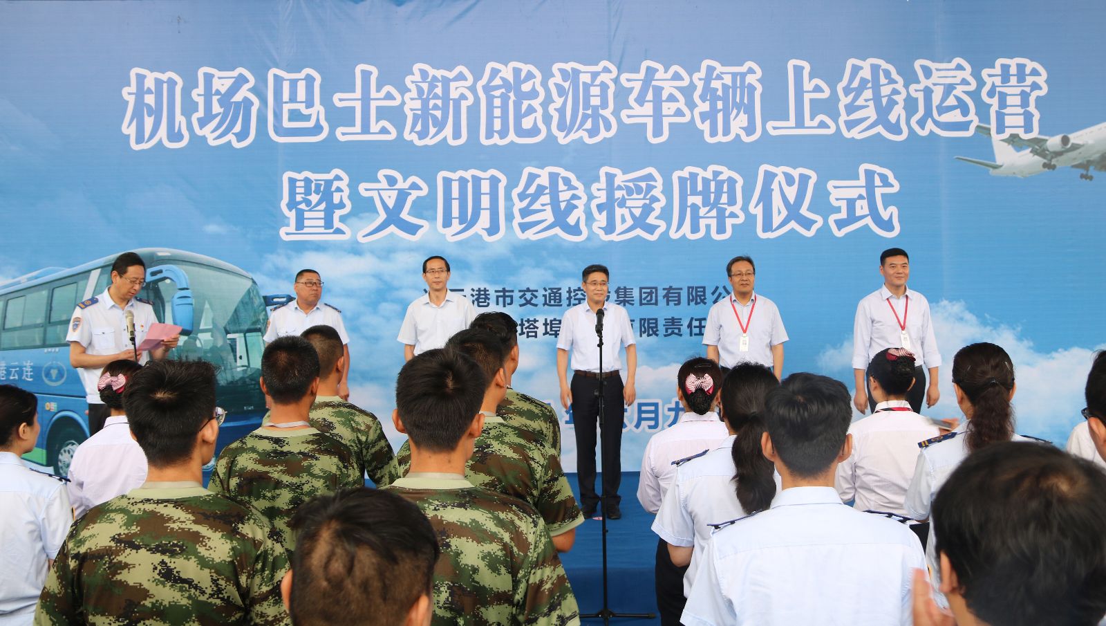 公交集團舉行機場巴士新能源車輛上線運營暨文明線授牌儀式