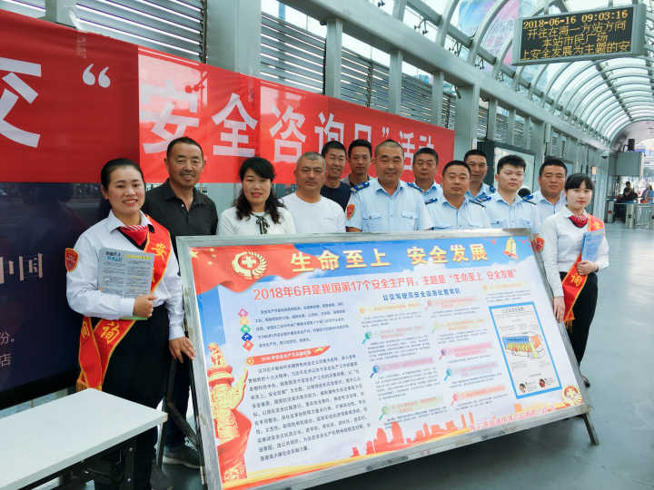 當天,公交集團權屬單位分別在BRT市民廣場站、蘇寧廣場、海州客運站、蘇欣快客站、汽車總站、墟溝購物中心、海棠路口、東盛廣場等城市繁華地段及人員密集的重要站點設置咨詢臺8處,宣傳展板5塊,懸掛橫幅6條,發放各類安全宣傳資料2000余份,各權屬單位安管人員共30余人參加了活動。