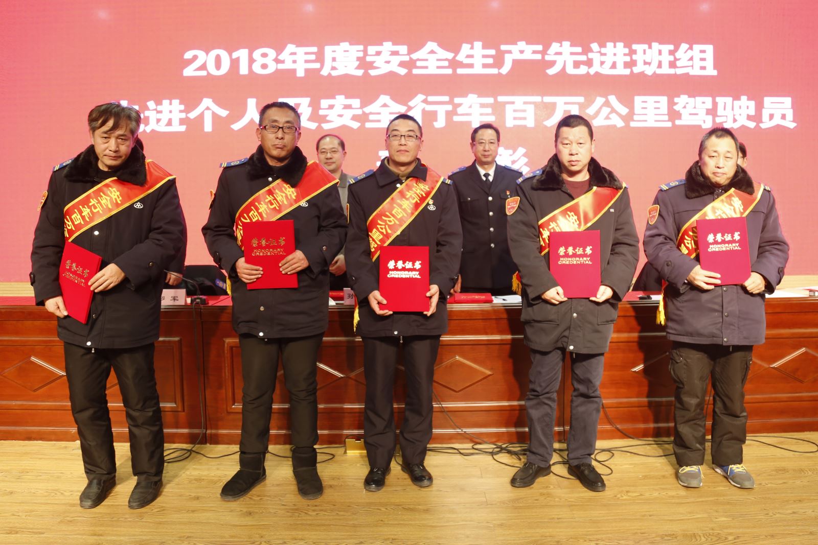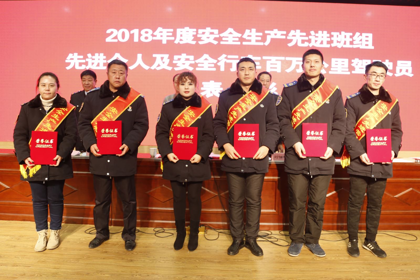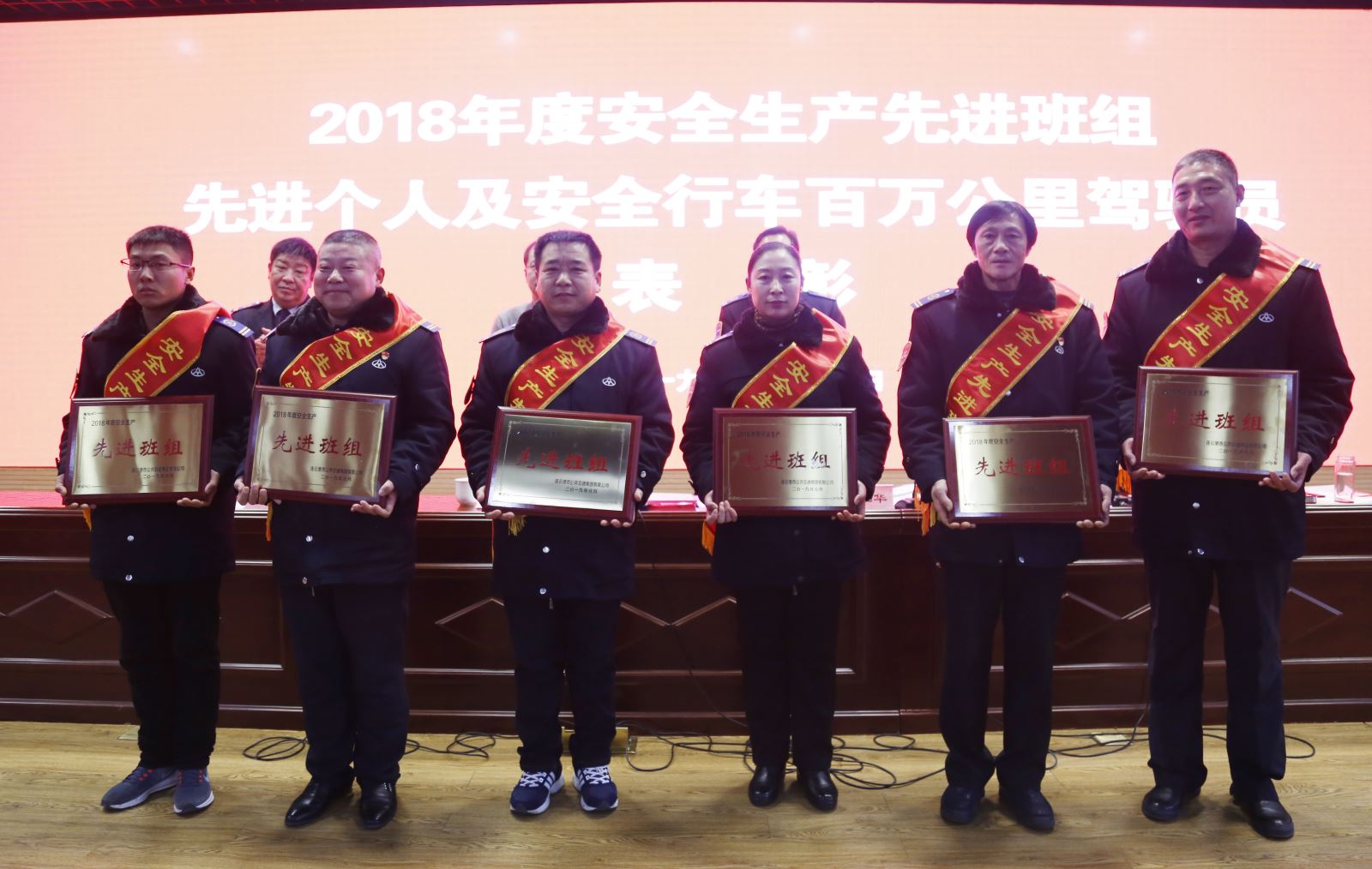 劉永善通報2018年安全生產目標管理考核結果,要求各事業部認真總結工作經驗,鞏固成績,克服不足,在新的一年里,加強對安全生產工作的組織領導,全面落實安全生產目標管理任務和安全保障措施,確保集團安全生產形勢的持續穩定。同時還宣讀2018年安全生產先進班組、安全生產先進管理者、安全生產先進工作者及安全行車百萬公里駕駛員的表彰決定,授予B11線等10個“安全生產先進班組”榮譽稱號、張雨培等7名“安全生產先進管理者”榮譽稱號、田生勤等8名“安全生產先進工作”者榮譽稱號,曹汝年等10名“安全行車百萬公里駕駛員”榮譽稱號,號召全體干部職工要以受到表彰的先進為榜樣,銳意進取。