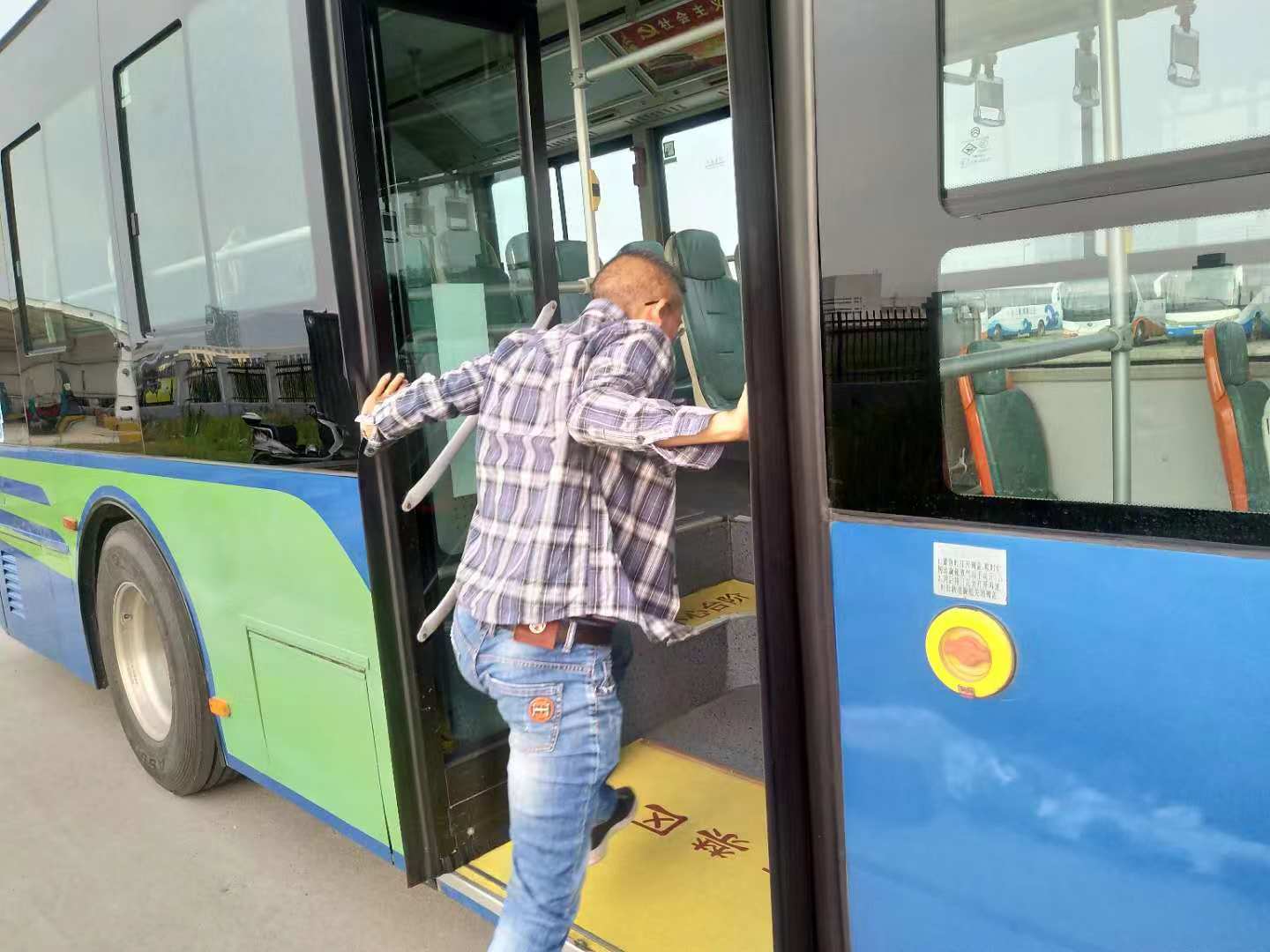 本次演練科目結合了問答與實際操作兩種模式,參加演練的人員首先模擬了電動車突發火災的情況,駕駛員通過旋轉右腿邊紅色緊急開門開關,放掉門泵氣壓后、向內側拽開前車門并推開后門疏散乘客,引導乘客至安全地點轉換車輛,并將事故報告至相關部門。隨后,通過問答的形式考驗駕駛員在惡劣天氣時車輛檢查和行駛期間注意事項,駕駛員一一作出回答。