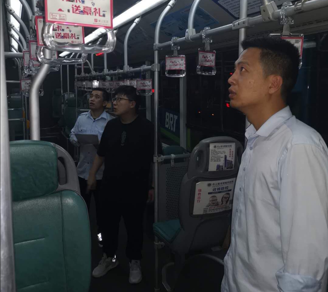 公交是體現(xiàn)一個城市文明形象的窗口,公交集團(tuán)快速事業(yè)部以“創(chuàng)建全國文明城市”為契機(jī),全面持續(xù)開展車輛環(huán)境衛(wèi)生檢查整改工作。事業(yè)部副經(jīng)理任超,于7月6日下午—7日帶領(lǐng)人員上路上線,對所有車輛進(jìn)行衛(wèi)生大檢查。本次主要針對車內(nèi)衛(wèi)生、車窗玻璃整潔度、衛(wèi)生死角及創(chuàng)文標(biāo)識等開展專項(xiàng)排查工作。東、西城分公司結(jié)合實(shí)際,針對創(chuàng)文也對車輛進(jìn)行了全面的檢查。